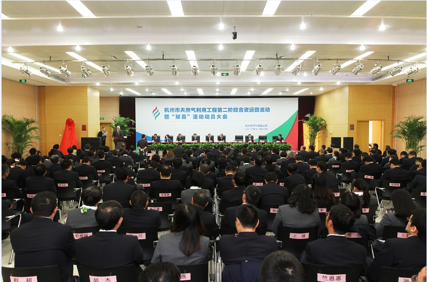 杭州市天然氣利用工程二階段合資項(xiàng)目涉及的所有審批均已完成,為確保合資公司順利運(yùn)營(yíng),保障今冬明春天然氣正常供應(yīng),2013年11月30日上午8:30,杭州市天然氣利用工程第二階段合資正式運(yùn)營(yíng)啟動(dòng)暨“雙百”活動(dòng)動(dòng)員大會(huì)順利召開(kāi)。合資各方股東代表、杭天董事會(huì)成員、杭燃集團(tuán)兩級(jí)中層以上干部、職工代表、黨團(tuán)員代表、杭燃主城區(qū)業(yè)務(wù)班組長(zhǎng)以上員工、杭天公司中層以上干部、黨團(tuán)員代表、班組長(zhǎng)以上員工近250人參加會(huì)議,市城投集團(tuán)總經(jīng)理章維明、副總經(jīng)理陳云龍出席會(huì)議。 會(huì)議由杭燃集團(tuán)總經(jīng)理俞建國(guó)主持。