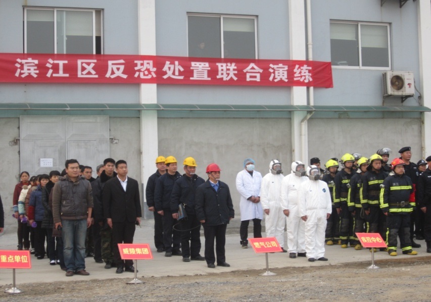 2013年12月20日下午,在杭天濱江分公司、區(qū)反恐辦的精心組織下,在海威大廈舉行了濱江區(qū)反恐處置聯(lián)合演練,分公司、區(qū)反恐辦、西興派出所、120急救中心、濱江消防大隊、區(qū)公安分局治安大隊、海威大廈物業(yè)百余人參加了此次演練。區(qū)委副書記俞少平等領(lǐng)導(dǎo)出席演習(xí)現(xiàn)場,區(qū)委、區(qū)政府屬各局、委、辦及區(qū)反恐聯(lián)動成員單位派員觀摩了此次演練。