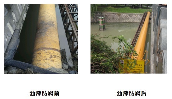 燃?xì)鈽蚬芊栏禽斉浞止?013年技措技改項(xiàng)目,上半年巡檢、巡護(hù)人員結(jié)合日常檢查工作,對(duì)在線運(yùn)行的橋管腐蝕情況進(jìn)行檢查統(tǒng)計(jì),并做好相應(yīng)的資料(如照片、管徑、長(zhǎng)度等)采集。8月初,分公司確定了施工單位,并與之簽訂了安全、文明施工協(xié)議。在協(xié)議中,針對(duì)橋管易受水氣侵蝕的特點(diǎn),要求施工單位嚴(yán)格施工工藝(除銹-打磨-防銹底漆-面漆等),按照施工規(guī)范進(jìn)行施工,同時(shí)要求施工單位落實(shí)安全責(zé)任,做好相應(yīng)安全防護(hù)措施;在實(shí)施過(guò)程中,輸配運(yùn)行分公司管理人員不定時(shí)對(duì)施工現(xiàn)場(chǎng)的安全和施工質(zhì)量進(jìn)行抽查,確保施工質(zhì)量達(dá)標(biāo)。通過(guò)2個(gè)多月的施工,完成了計(jì)劃的19座橋管防腐工程,其中 5座是燃?xì)鈽蚬芨g影響城市美化的數(shù)字城管案卷。