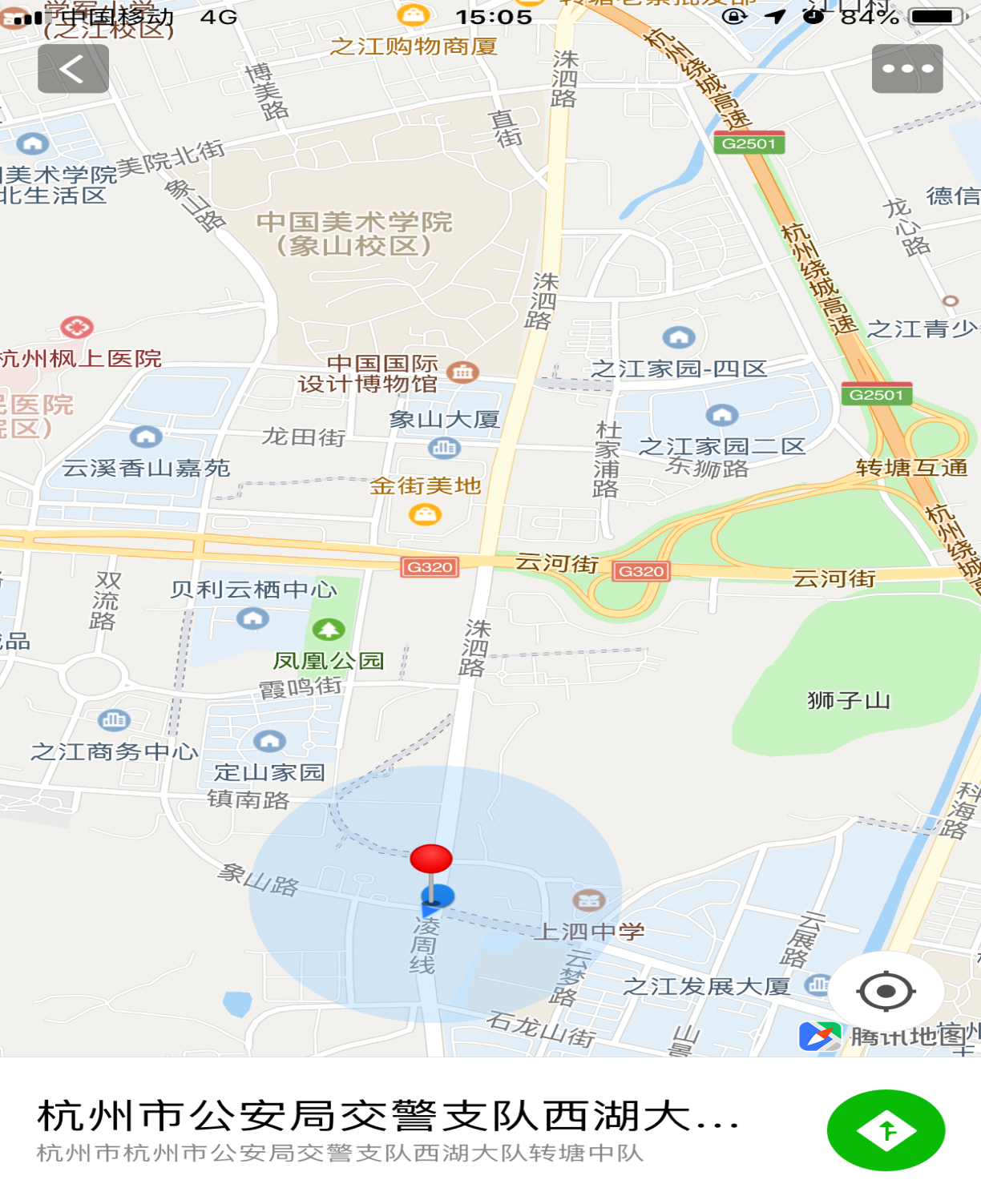 注:圖中紅色標注處為新轉塘營業(yè)廳地址位于洙泗路與象山路交叉口(杭州公安交警支隊西湖大隊轉塘中隊附近)。